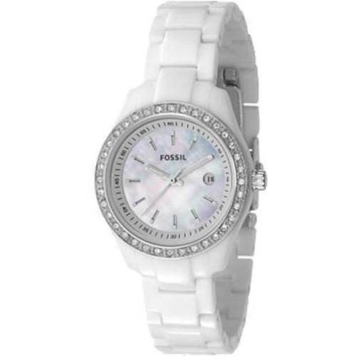 Fossil Women's ES2437 White Resin Bracelet White Mother-Of-Pearl Glitz Analog Dial Watch Feature