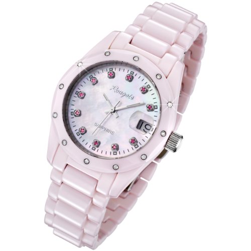 Rougois Women's Pink Ceramic Watch with Genuine Diamonds, Red Rubies, and Mother of Pearl Dial Review